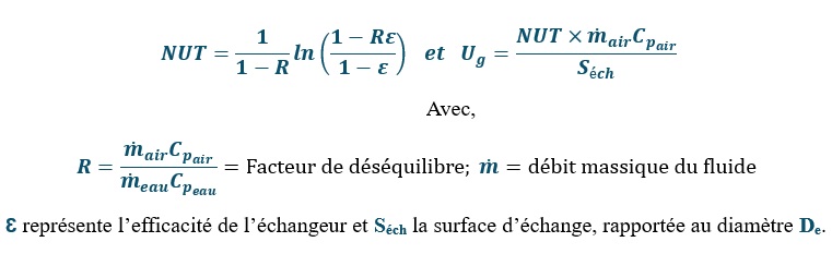 On cherche maintenant à estimer la nouvelle efficacité de l’échangeur notée Ɛ2, après un an d’utilisation et en présence d’encrassement. Pour cela, on utilisera la méthode de NUT (Nombre d’Unité de Transfert) rappelée ci-dessous :