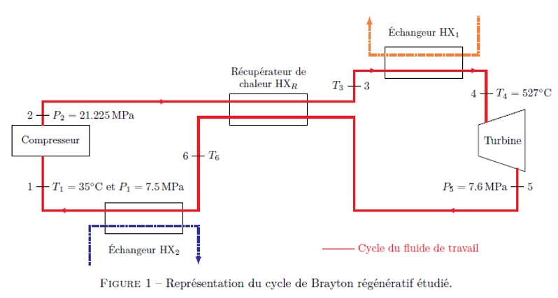 Le cycle étudié est représenté Fig-1. Il s’agit d’un cycle de Brayton régénératif utilisant du CO2 supercritique comme fluide de travail.